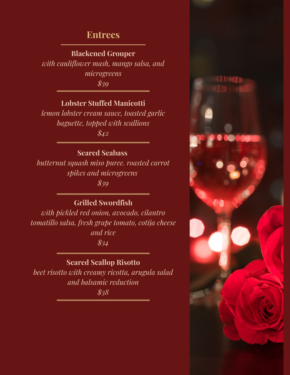 Valentines Day Menu